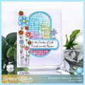 A big congrats to Arlene, the newest Featured Stamper FS988! She has a sweet gallery & I chose THIS card to case. I kept the multicolor background but put it inside the center shape instead of around, I kept the colors & spring theme but used flowers outside the shape instead of a bunny inside.