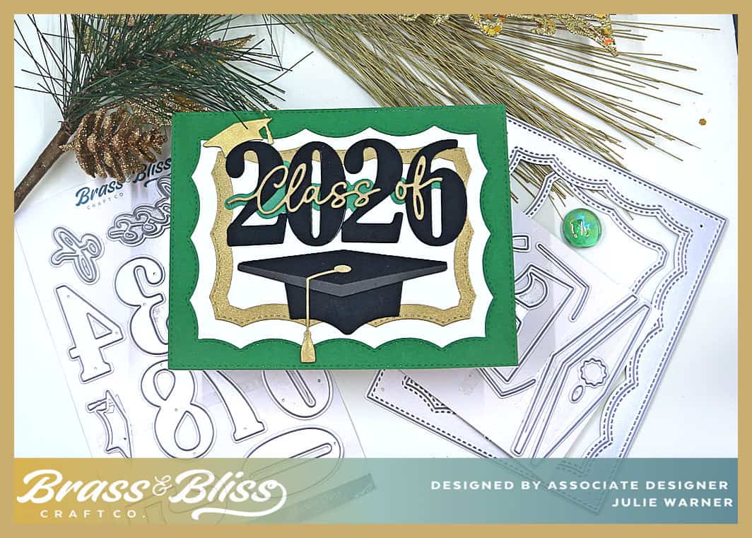 Today I have a card for a graduate in 2026! I love these new dies and they are so easy to personalize by changing the colors to match the school colors for the graduate. The big numbers will see plenty of use for other cards, too. Like birthday, New Years, or to commmemorate a special anniversary. I’m a little partial to the green & white because those were my school colors.