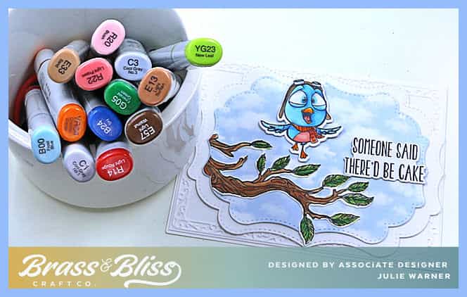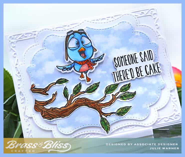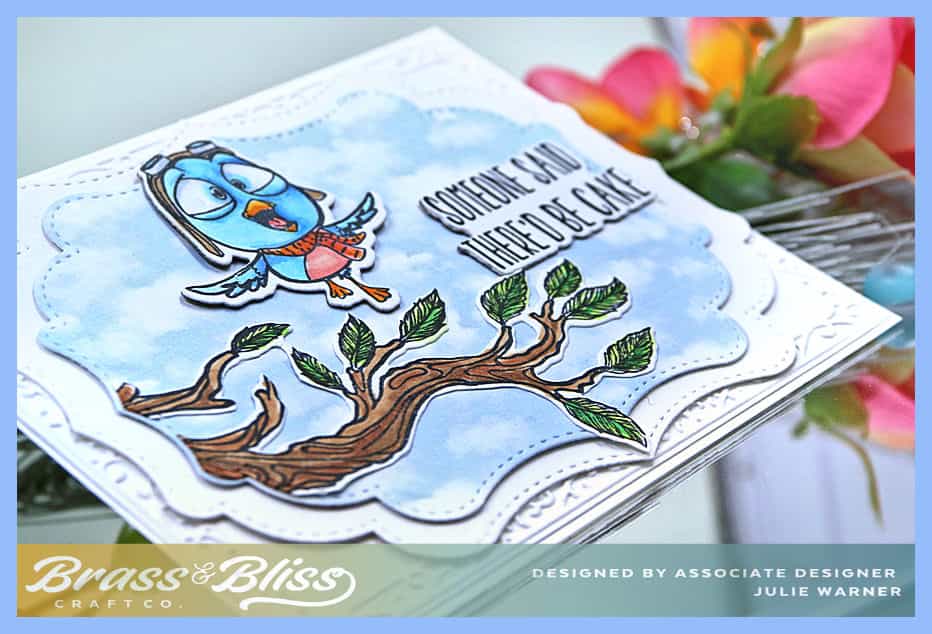 | Accessories: Â Brass & Bliss: Sky-High Birthday Birds, Victorian Labels dies, Â MISTI, Sizzix Flourish & Postcard 657666 embossing folder set, Copic markers |