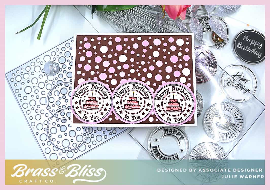 Today I have a fun birthday card that works equally well for guys or girls. Best of all, it’s easy to make, easy to customize to colors for the recipient, and there are a lot of these birthday circles to choose from in this set. All you need is a few dies and one stamp set.