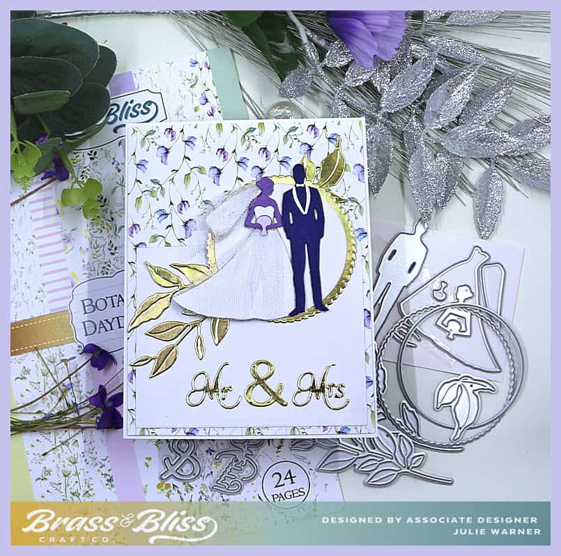 Spring is a time when a lot of weddings take place and today I have some new dies and paper featuring the Spring Wedding theme. This wedding couple and flowery print paper are just gorgeous! It would be fun to use the bride’s wedding colors to customize your card!