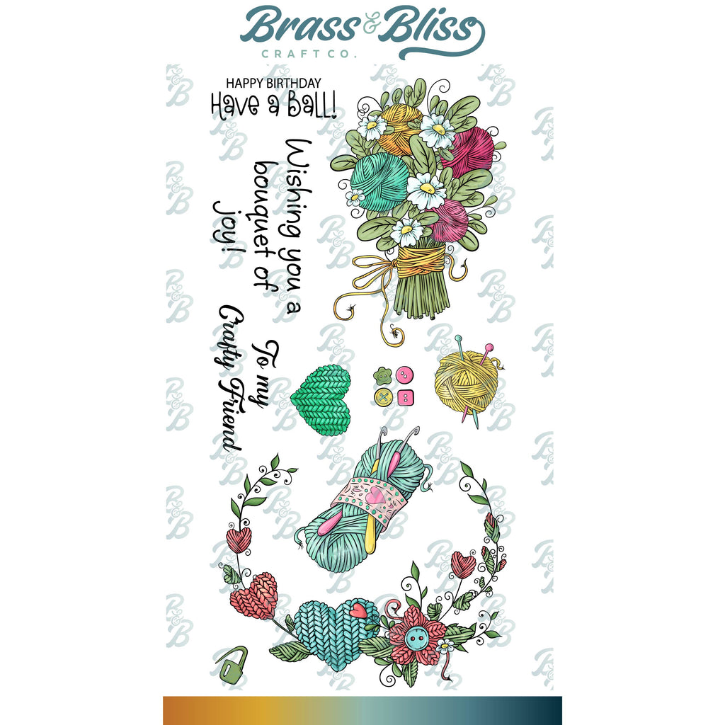 A card for all your knitting or crocheting friends! This new set is literally a ball! There are even more images and greetings to use and all come with coordinating dies. How cool is that? And the ticking background gives a wonderful pattern. It’s also a good to show off your own knit or crochet skills by adding a little yarn element or two.