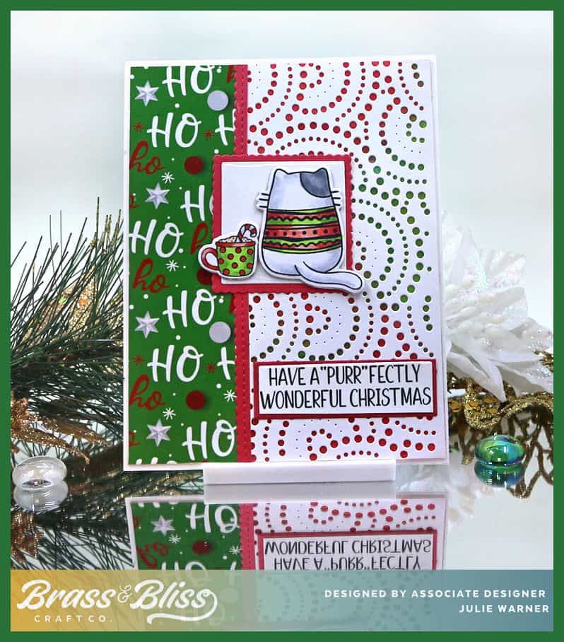 Accessories:  Brass & Bliss: Circle Cover, Christmas Cats, Classic Edge Cut, Squares, Scallop Squares dies,  Misti, Copic markers