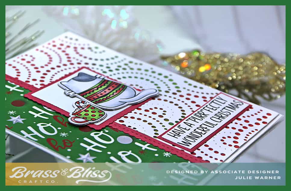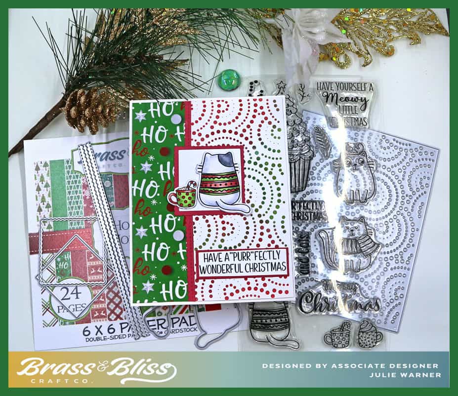| Accessories: Brass & Bliss: Circle Cover, Christmas Cats, Classic Edge Cut, Squares, Scallop Squares dies, Misti, Copic markers |